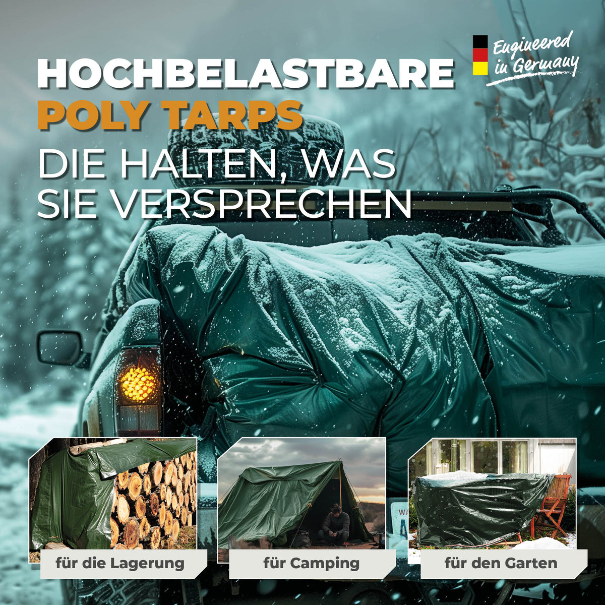 Die Abdeckplane ist zu 100 % UV-beständig, wasserdicht und frostbeständig, was bedeutet, dass Ihre Gegenstände sicher vor Sonne, Regen und Schnee geschützt sind. Ihr doppelt verschweißter Planenrand sorgt für eine zuverlässige Abdichtung, während die alle 50 cm platzierten, ultraschallgeschweißten Ösen eine einfache Befestigung ermöglichen. Darüber hinaus ist die Plane verrottungsfrei und vollständig wiederverwertbar, was sie zu einer umweltfreundlichen Option macht. Mit ihrer hohen Haltbarkeit hält sie bis zu 7-mal länger als herkömmliche Planen.
